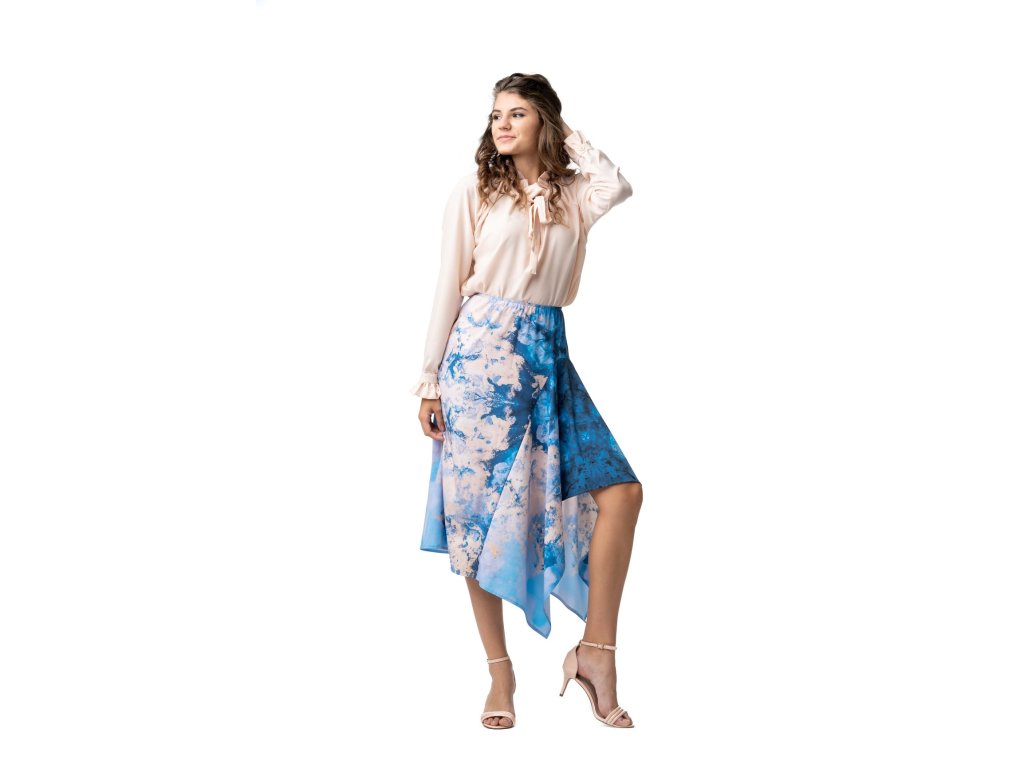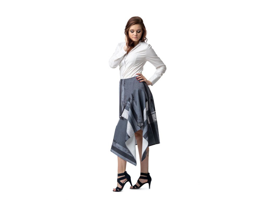 Nádherná sukně jedinečného střihu s elegantními cípy. Sukně s gumou v pase. Použitý materiál je velmi lehký, což oceníte v letních měsících.